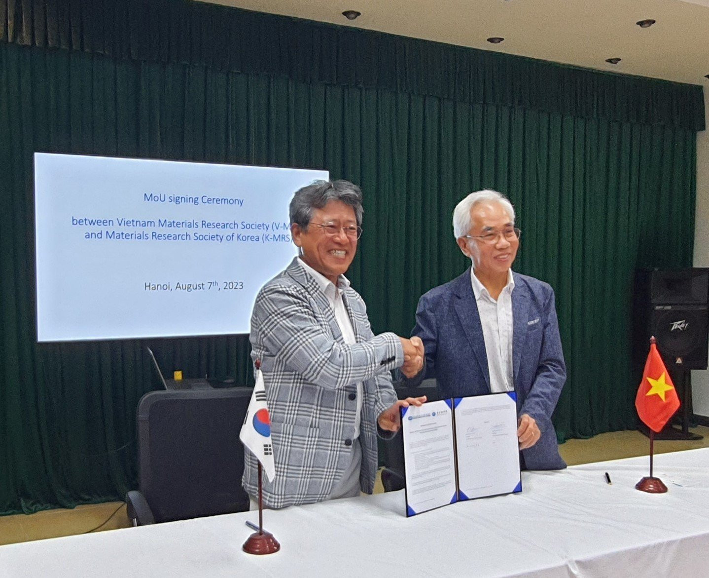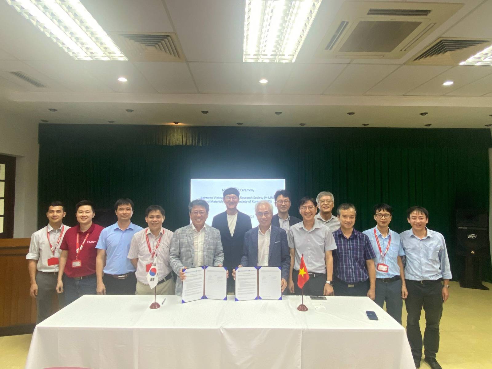 Ngày 7/8/2023 tại Viện Đào tạo quốc tế về Khoa học vật liệu (ITIMS) đã diễn ra lễ ký Biên bản ghi nhớ (MoU) về hợp tác giữa Hội Khoa học Vật liệu Việt Nam (V-MRS) và Hội Khoa học Vật liệu Hàn Quốc (K-MRS).